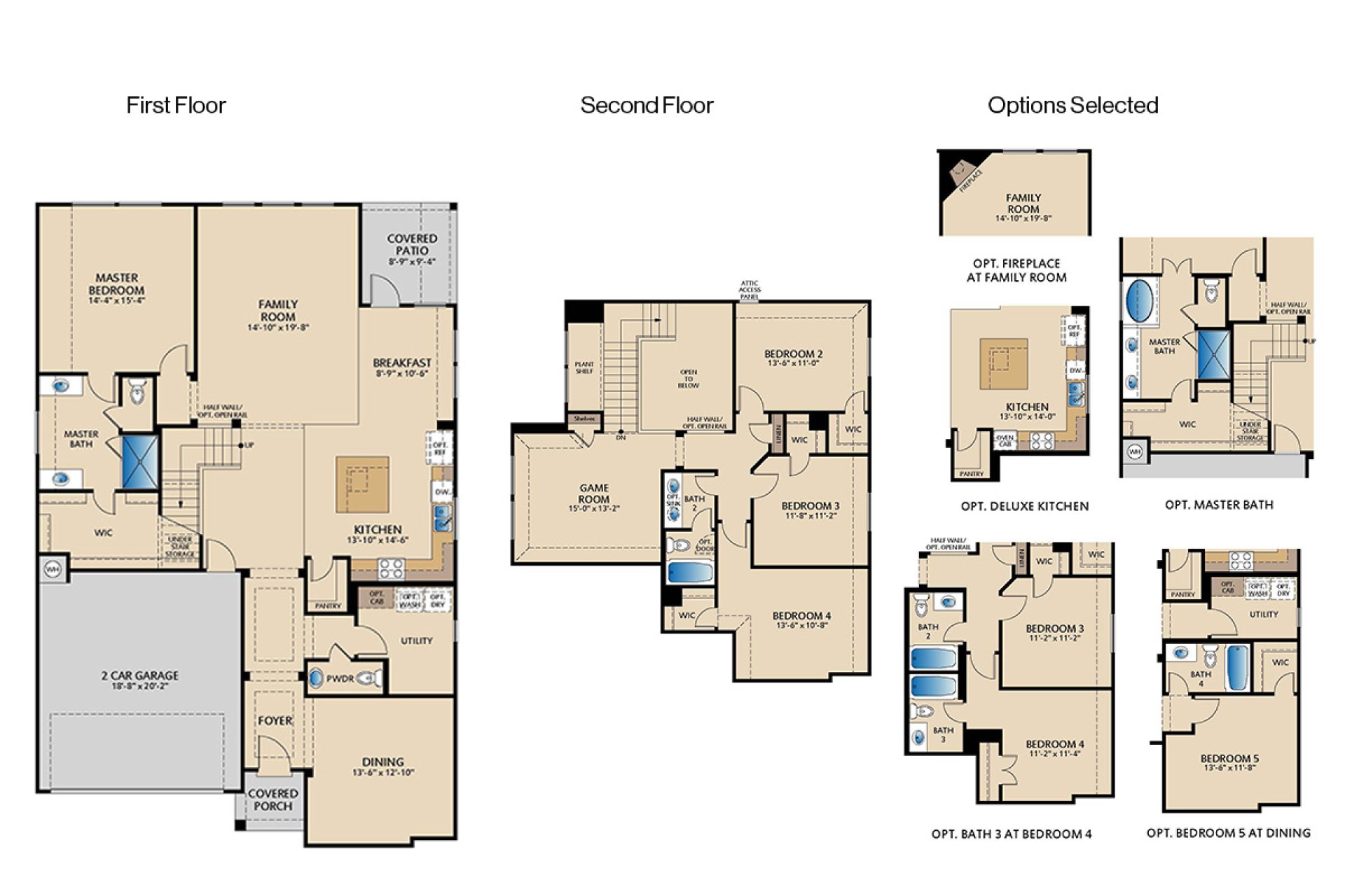 The Garland is a stunning two-story floor plan that is 2,816 SF and features 5 bedrooms and 4 bathrooms. With a spacious game room, you'll have plenty of room to entertain guests or spend quality time with family. The covered patio is perfect for enjoying the outdoors, rain or shine. The breakfast area is a cozy spot to enjoy your morning coffee or a quick meal, while the dining room provides a more formal space for family dinners or hosting guests. Some of the many upgrades included in this home are the vaulted family room ceiling, deluxe kitchen and bath, and fireplace.