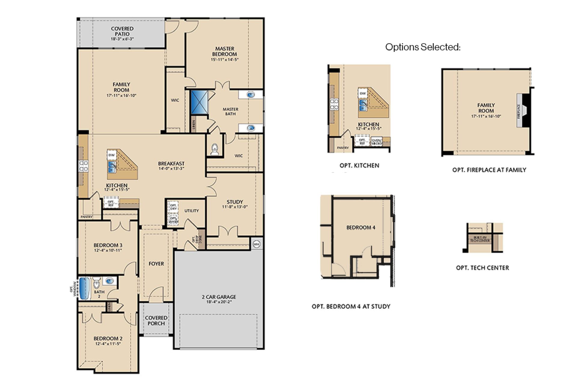 This beautifully designed 4-bedroom, 2-bath home with a 2-car garage offers a perfect blend of style and functionality. The open-concept floor plan is filled with natural light, thanks to upgraded windows in the family room, creating a bright and inviting space. A cozy fireplace adds warmth and charm, making it the perfect spot to gather. The deluxe kitchen is a chef’s dream, featuring shaker-style white painted cabinets, a gas cooktop, built-in appliances, and quartz Frost White countertops. Thoughtful upgrades like a pull-out trash can drawer, a deep pot-and-pan drawer, and a stunning mosaic tile backsplash add both convenience and elegance. The spacious primary suite is a private retreat with a walk-in closet and a spa-like en-suite bath with dual vanities. Three additional bedrooms provide plenty of space for family, guests, or a home office. Luxury vinyl plank flooring runs throughout the main living areas, combining durability with a modern look. A covered patio extends the living space outdoors, perfect for relaxing or entertaining. Located in the highly-sought after Elevon community, this home is just around the corner from the upcoming Amenity Center, which will include a pool with tanning ledge, splash pad, private cabanas, outdoor kitchen, clubhouse, playgrounds, and sports courts - including pickleball! Plus, enjoy miles of nature trails and the convenience of 1-gig fiber optic internet included in the HOA.