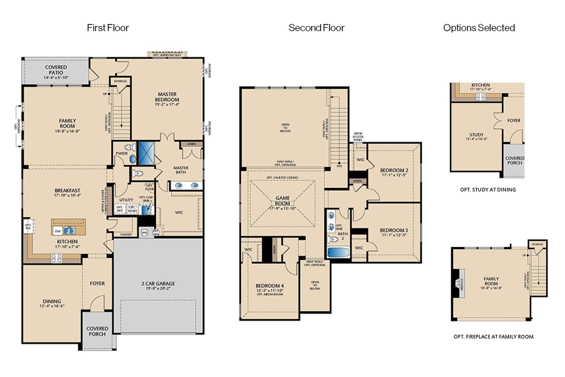 This 4-bedroom, 3.5-bath home opens to a spacious family room centered around an upgraded fireplace with elegant floor to ceiling tile surround and box beam mantle. The study with glass doors on the first floor allows for a private at-home work space. The open floor plan flows seamlessly into the gourmet kitchen, complete with stained cabinetry, Carrara Mist quartz countertops, a large island with pull-out trash drawer, Fawn Glossy subway tile backsplash, and stainless steel GE appliances including gas cooktop, built-in oven, and microwave. The downstairs master suite boasts dual sinks, a large glass-enclosed tile shower, and a generous walk-in closet. Luxury vinyl plank flooring throughout the main living areas add convenience and elegance. Upstairs, the game room provides extra space for entertaining or relaxing and 3 secondary bedrooms. Additional features include added wall-height outlets in the family room and master suite for flat-screen TVs.