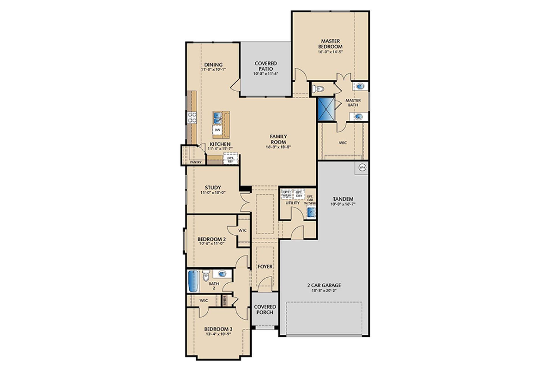 Welcome to this beautiful 3-bedroom, 2-bath home, where the spacious family room with raised ceilings sets the tone for open, light-filled living. Luxury vinyl plank flooring adds a seamless, modern look throughout the main living areas. The private study with glass French doors adds to the open feel of the home. The gourmet kitchen features warm toned, stained cabinetry, a beautiful white tile herringbone backsplash, Aruca White quartz countertops, a large island with pendant lighting, a pull-out trash drawer, plus stainless steel GE appliances, including a gas cooktop, built-in oven, and microwave. The primary suite includes dual vanities, framed mirrors, and a glass-enclosed tile shower. Added touches like raised height outlets in the family room and master for flat-screen TVs, plus a THREE-car tandem garage, combine style with everyday convenience.